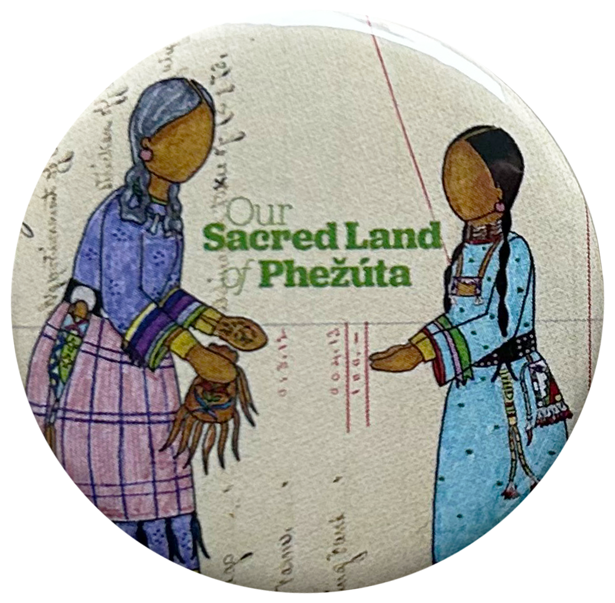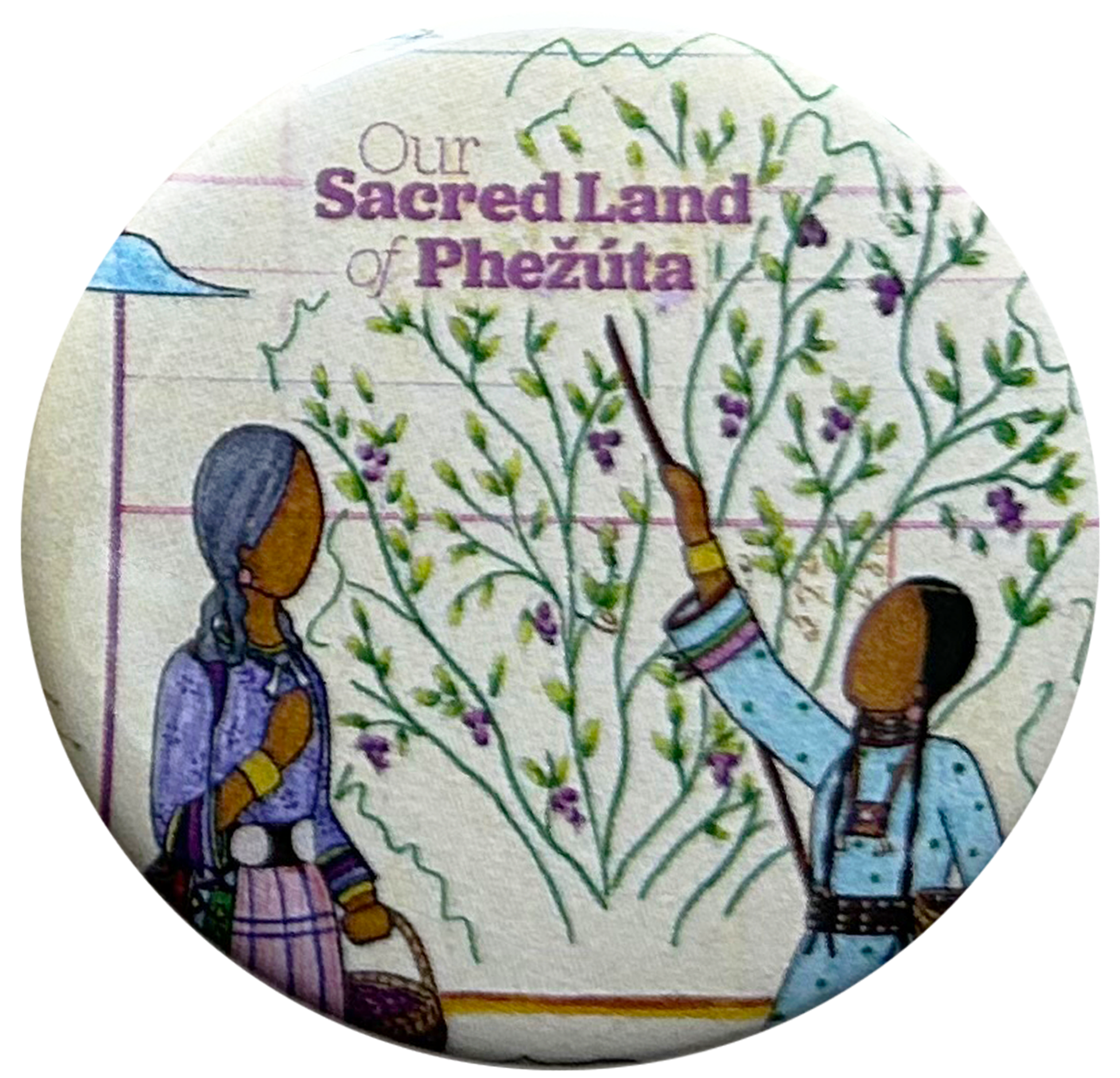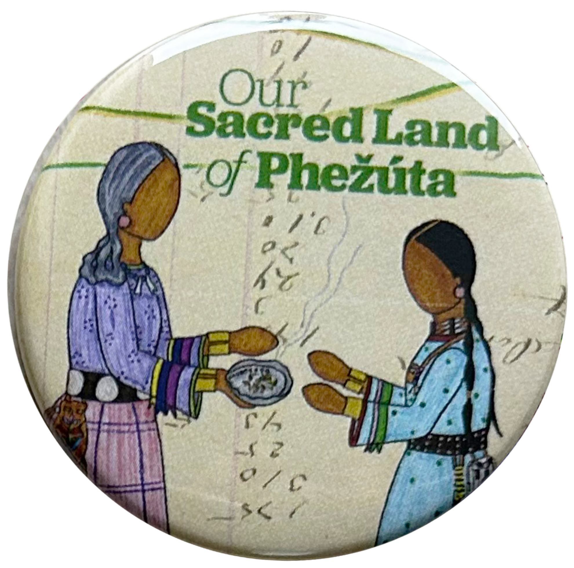 Buttons made as promotional material for Our Sacred Land of Phežuta children's book for MNHS Press.