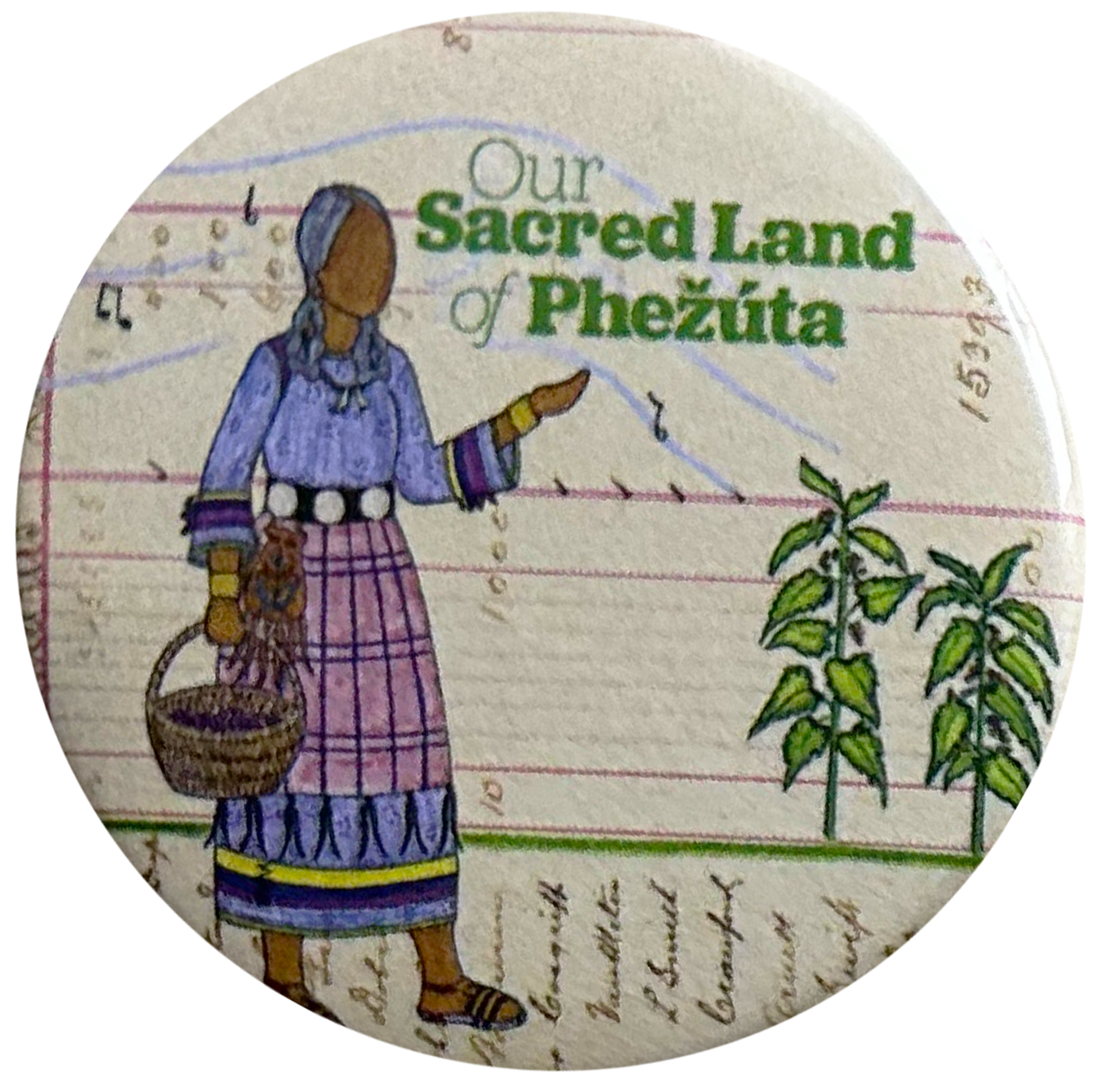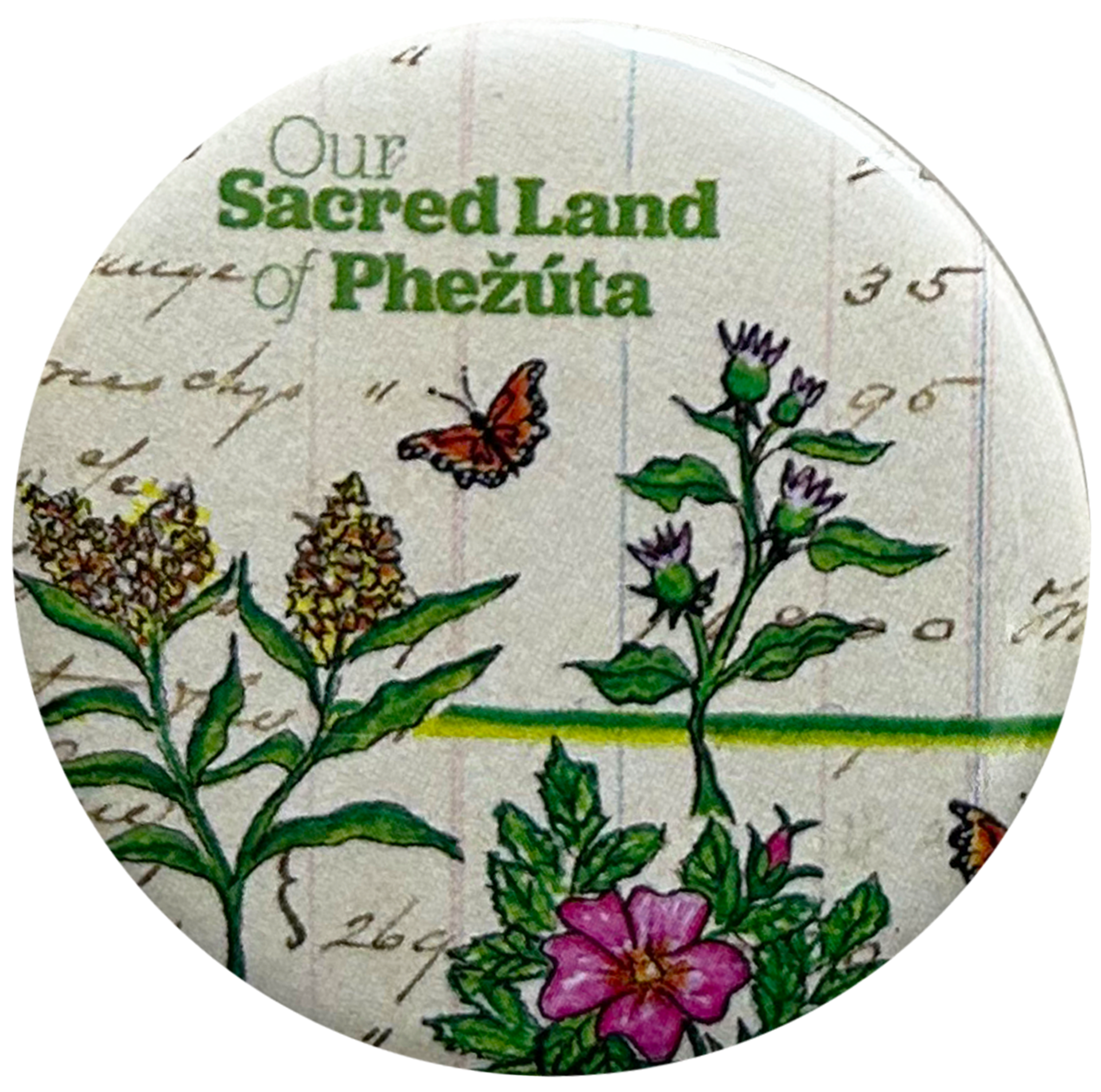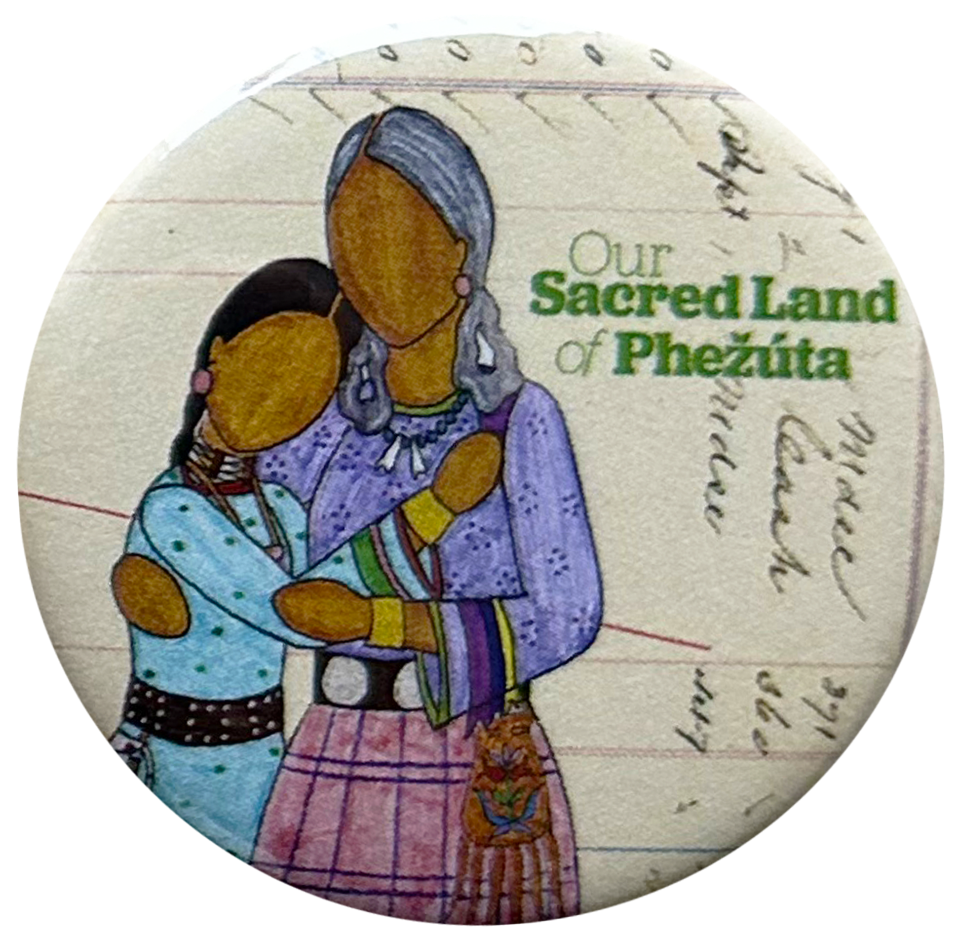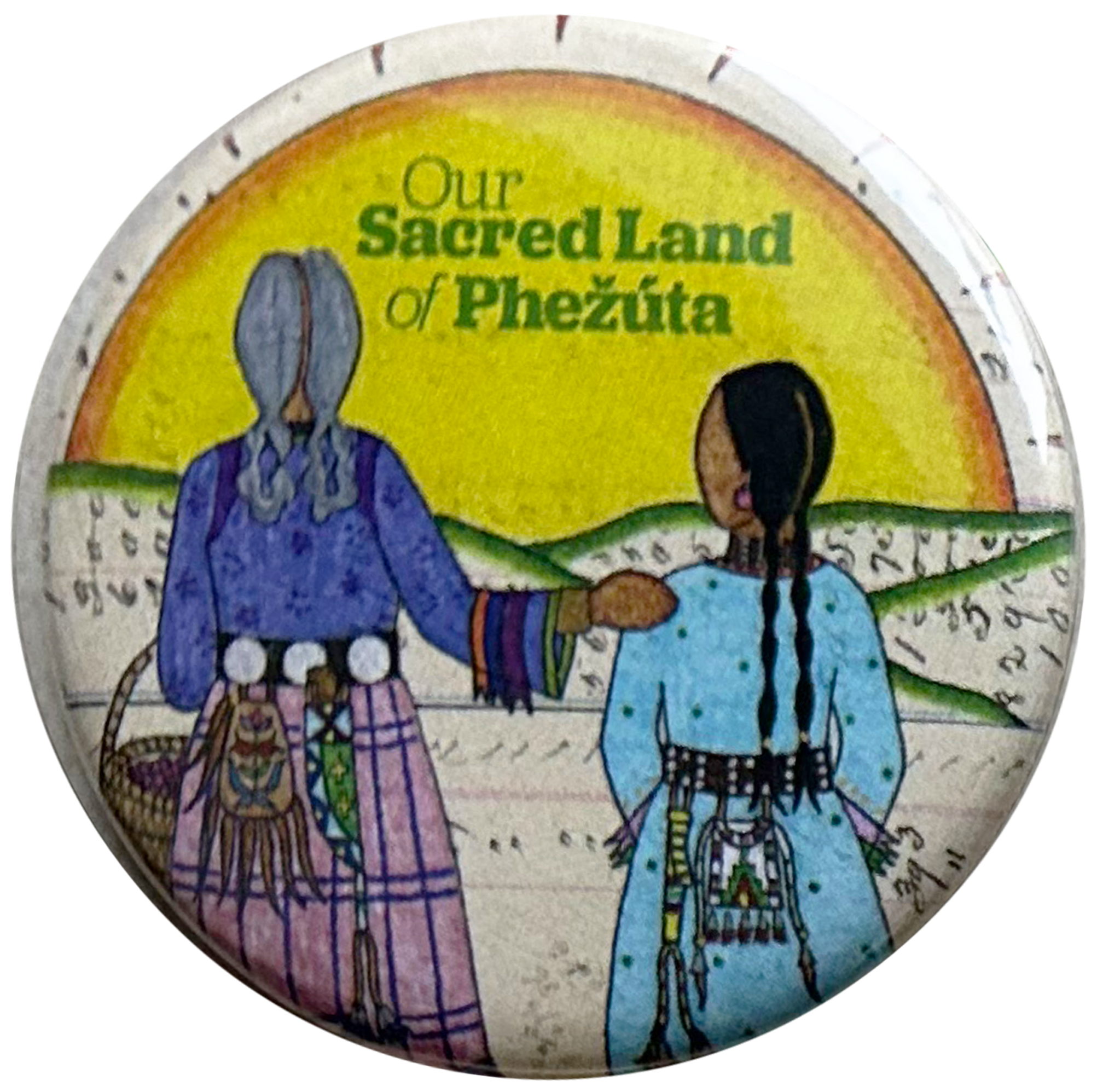 Buttons made as promotional material for Our Sacred Land of Phežuta children's book for MNHS Press.